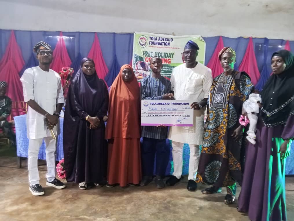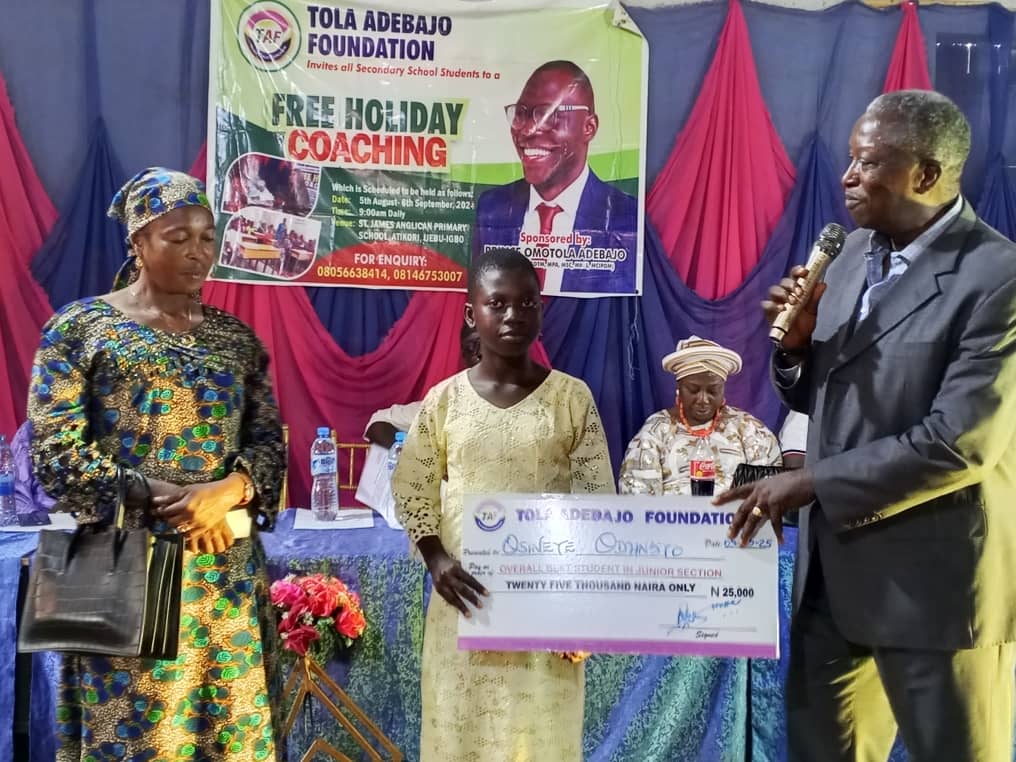 The Tola Adebajo Foundation (TAF) has honoured outstanding students in Ijebu-Igbo, Ogun State, with scholarships, cash awards, and educational materials at the closing ceremony of its third annual free holiday coaching programme.